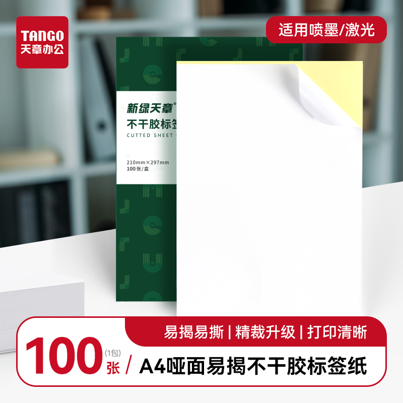【天章/TANGO】新绿天章a4不干胶打印纸打印贴纸背胶纸哑光不干胶标签贴纸激光喷墨亚光牛皮纸不干胶a4光面