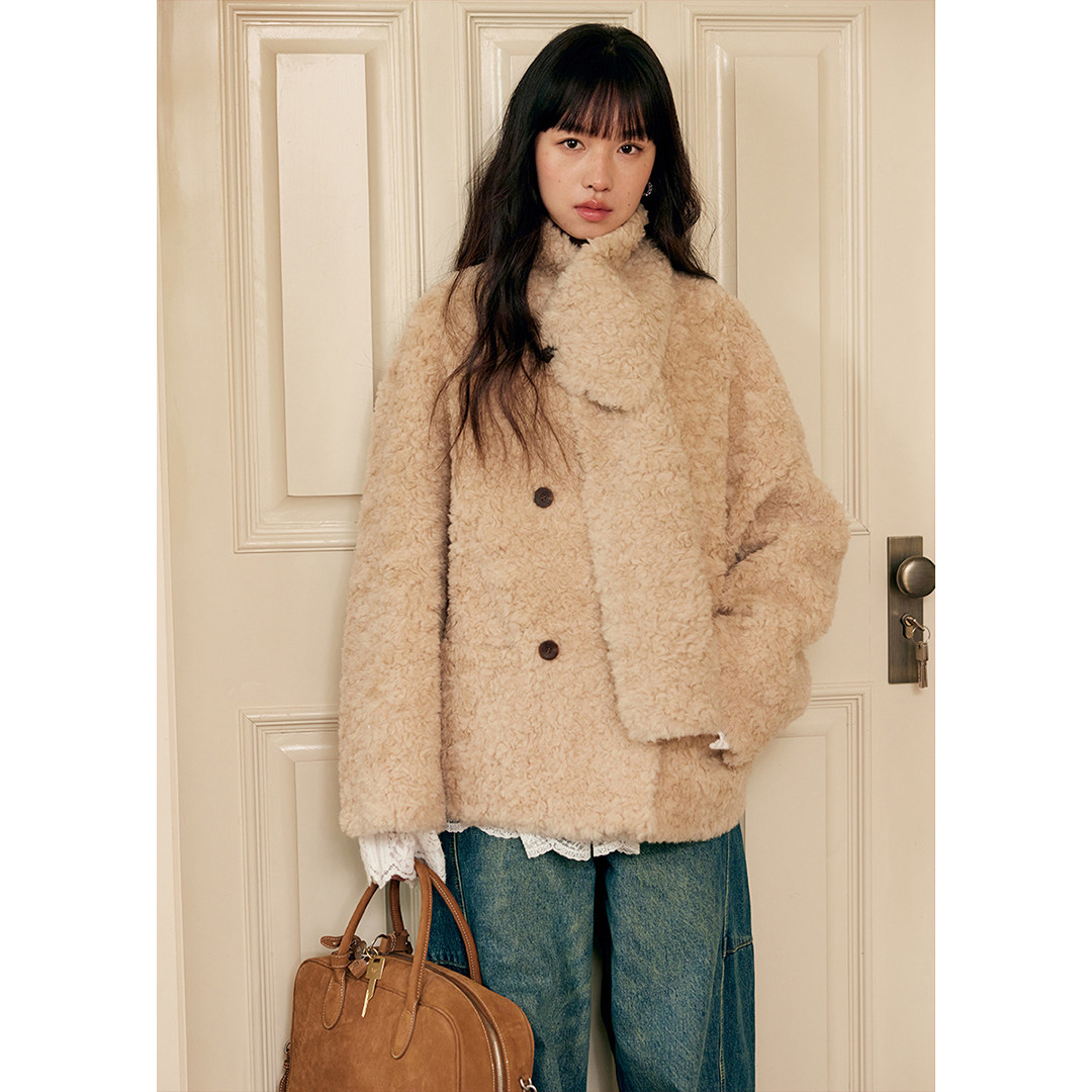 赵露思同款驼色超好看皮毛一体羊羔毛颗粒绒外套女皮草泰迪熊大衣