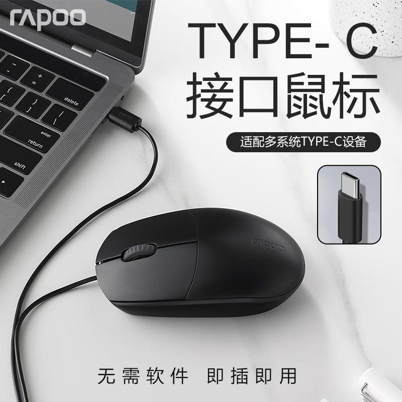 雷柏N100C有线鼠标笔记本电脑通用typec接口安卓平板手机mac办公