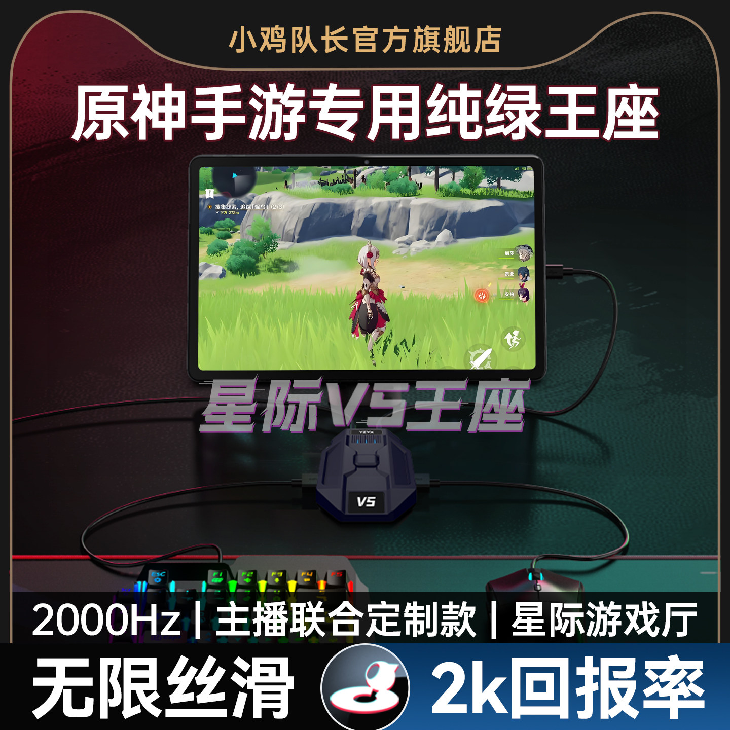 小鸡队长2026新款星际V5原神手游外设王座键鼠转换器走位神器崩坏永劫无间火影忍者鸣潮安卓平板手机游戏专用