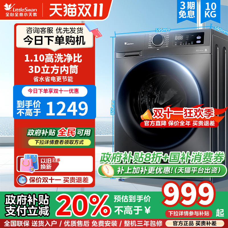 小天鹅水魔方滚筒洗衣机超薄10公斤洗烘一体小钢炮全自动家用3.0