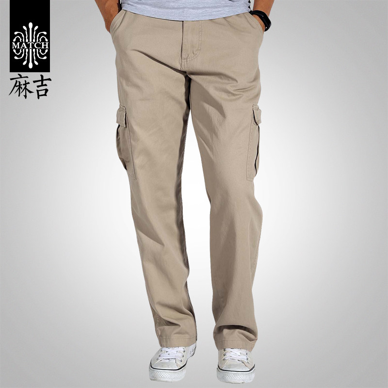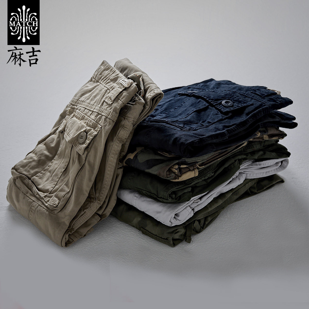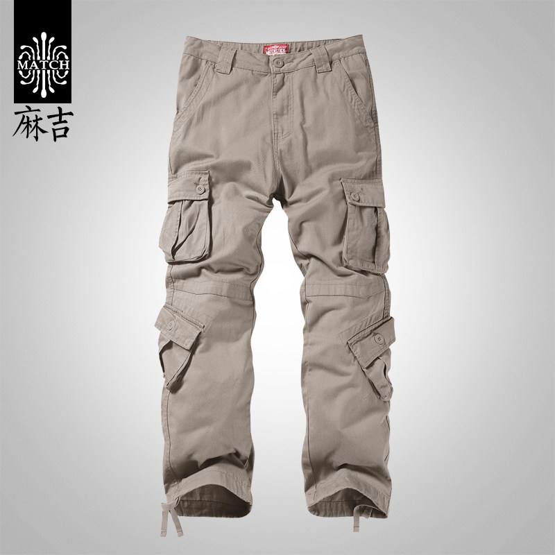 match麻吉工装裤男长裤宽松秋冬多口袋休闲裤纯棉直筒户外裤6516