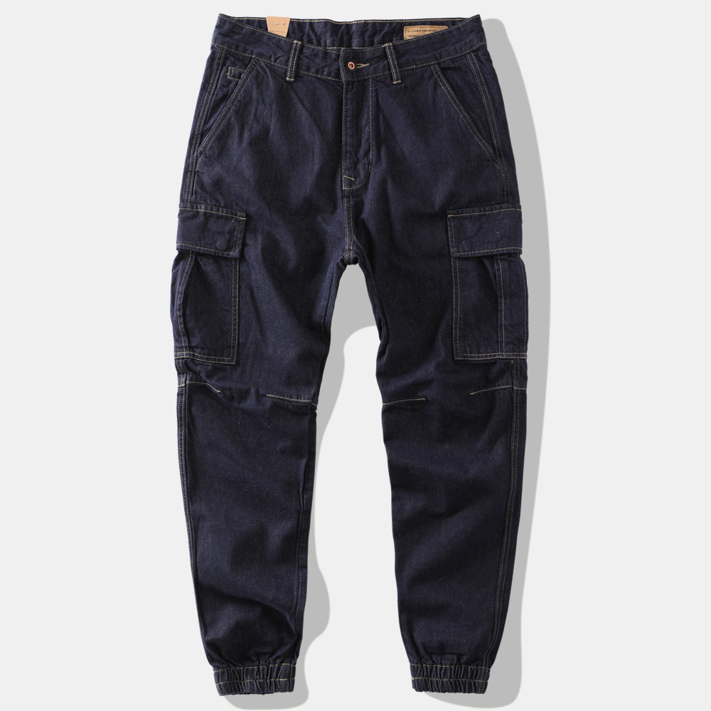 秋冬重磅美式复古束脚裤宽松直筒牛仔裤休闲男式工装裤洗水多口袋