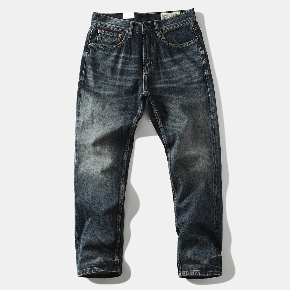 重磅秋冬厚款赤耳单宁直筒宽松牛仔裤男士做旧日系复古休闲长裤子
