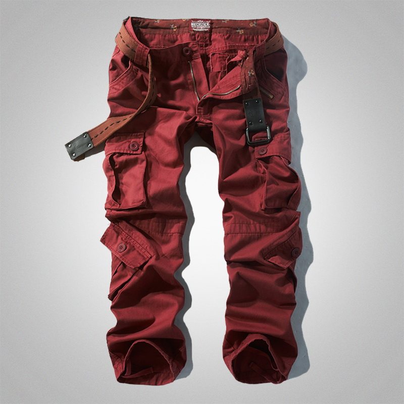 重磅纯棉士休闲裤大码工装裤长裤户外宽松直筒多口袋酒红cargo潮