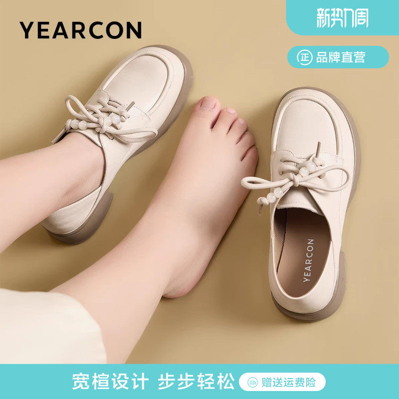加宽版意尔康小皮鞋2026春季新款羊皮乐福鞋休闲单鞋串珠大码女鞋