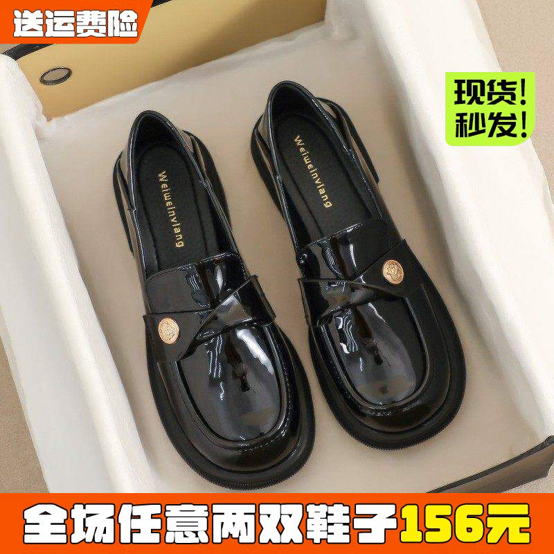 米霏~黑色小皮鞋女英伦2026春季新款平底单鞋百搭乐福鞋大码女鞋