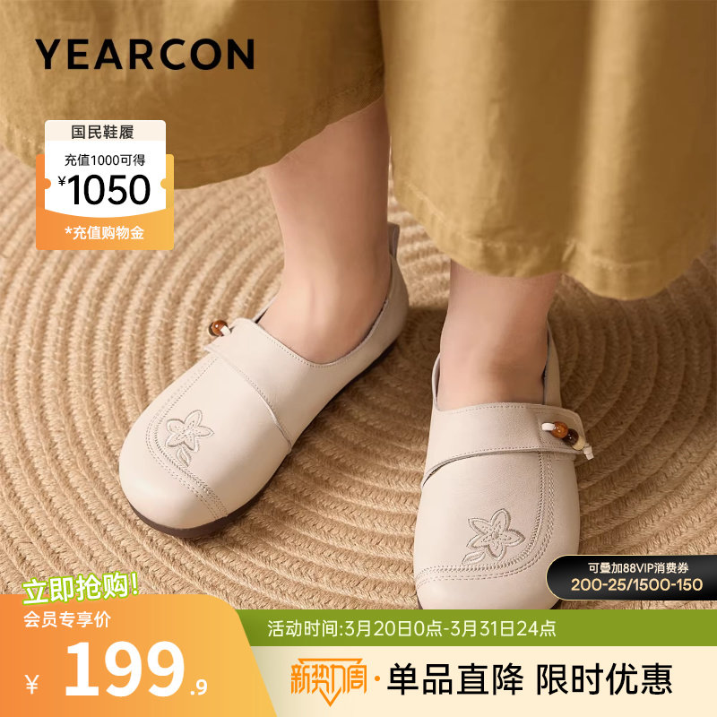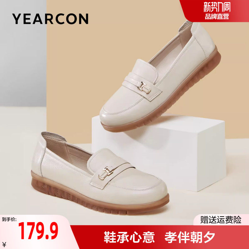 意尔康女鞋2026春季新款大码真皮乐福鞋平底休闲单鞋中老年妈妈鞋