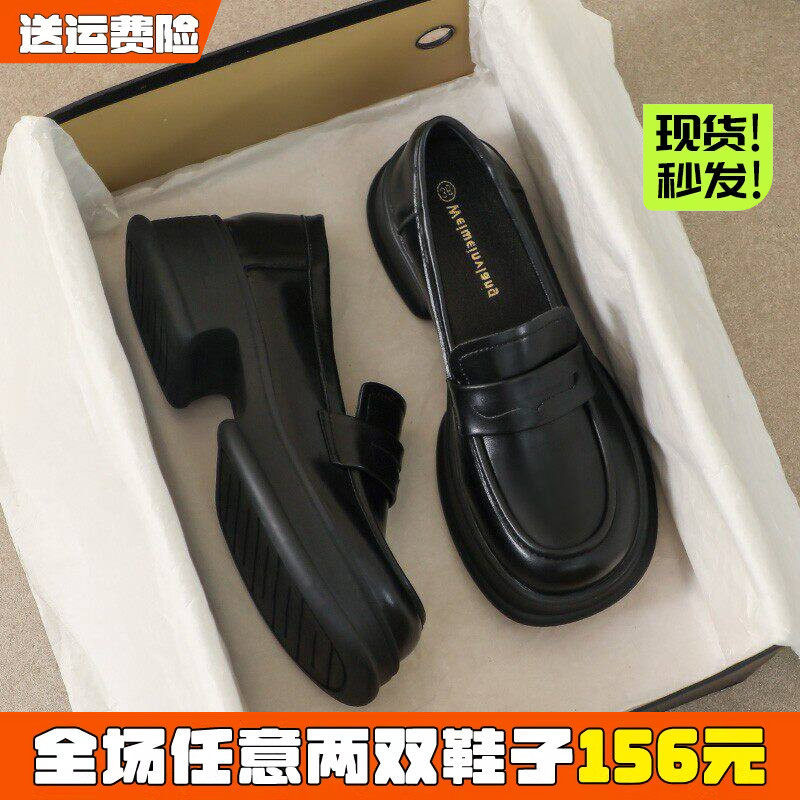 米霏~黑色厚底小皮鞋女春季2026新款增高单鞋英伦乐福鞋大码女鞋