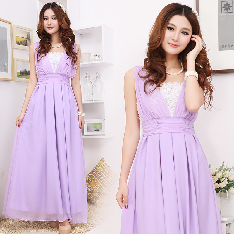 2025年冬季雪纺连衣裙子女士长款长裙结婚礼小礼服裙背心晚装913