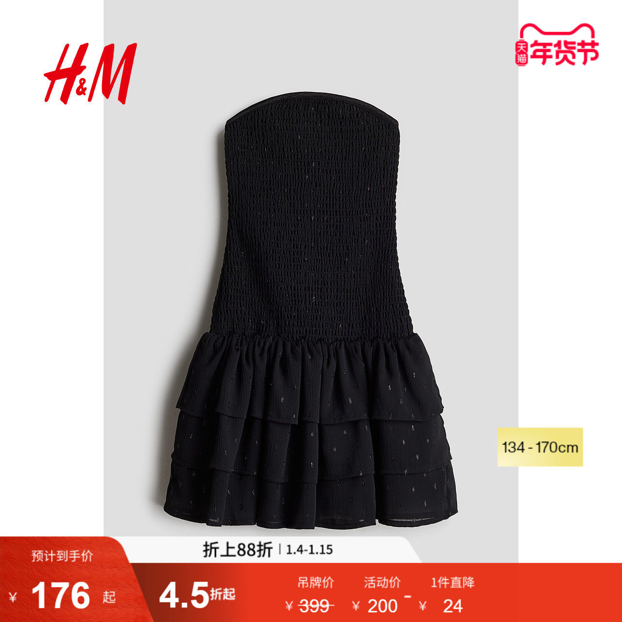 HM女装连衣裙冬季女士潮流时尚荷叶边雪纺连衣裙1236797