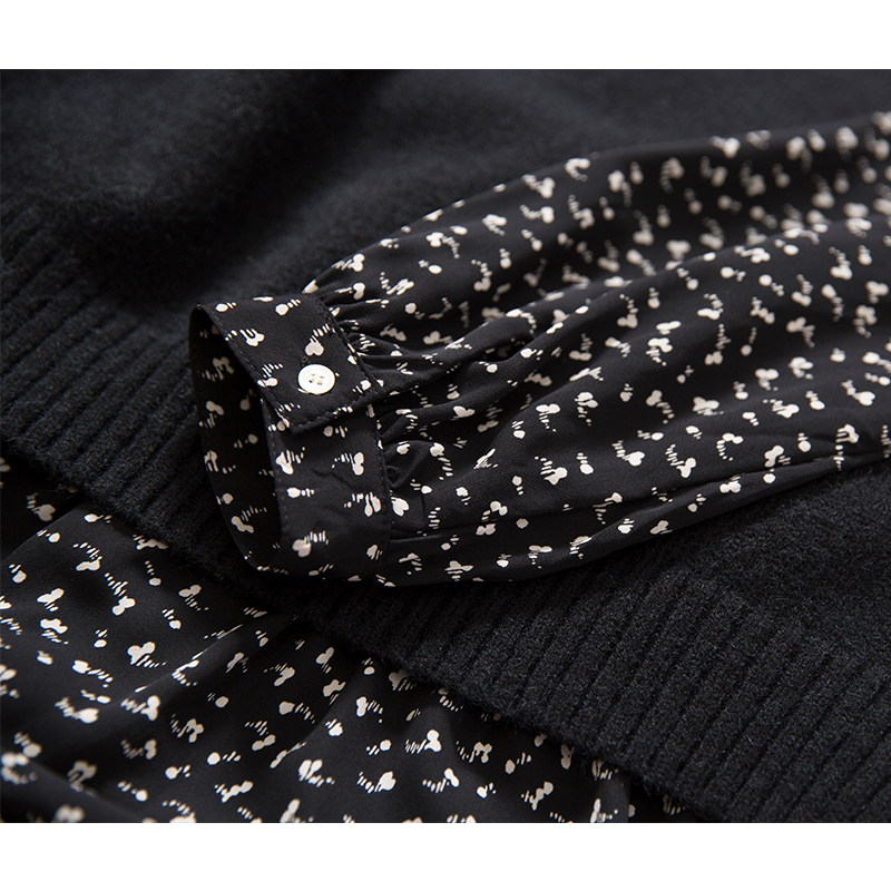 气质碎花雪纺连衣裙针织背心马甲两件套黑色2021秋冬季长款打底女