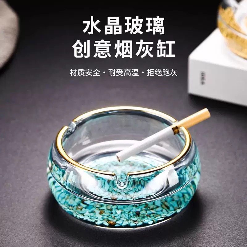 轻奢高档水晶烟灰缸金箔绿松石家用玻璃烟缸客厅办公茶几创意摆件