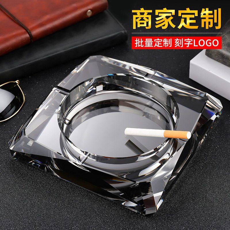 水晶烟灰缸个性潮流办公室大气简约家用客厅轻奢创意定制玻璃烟缸