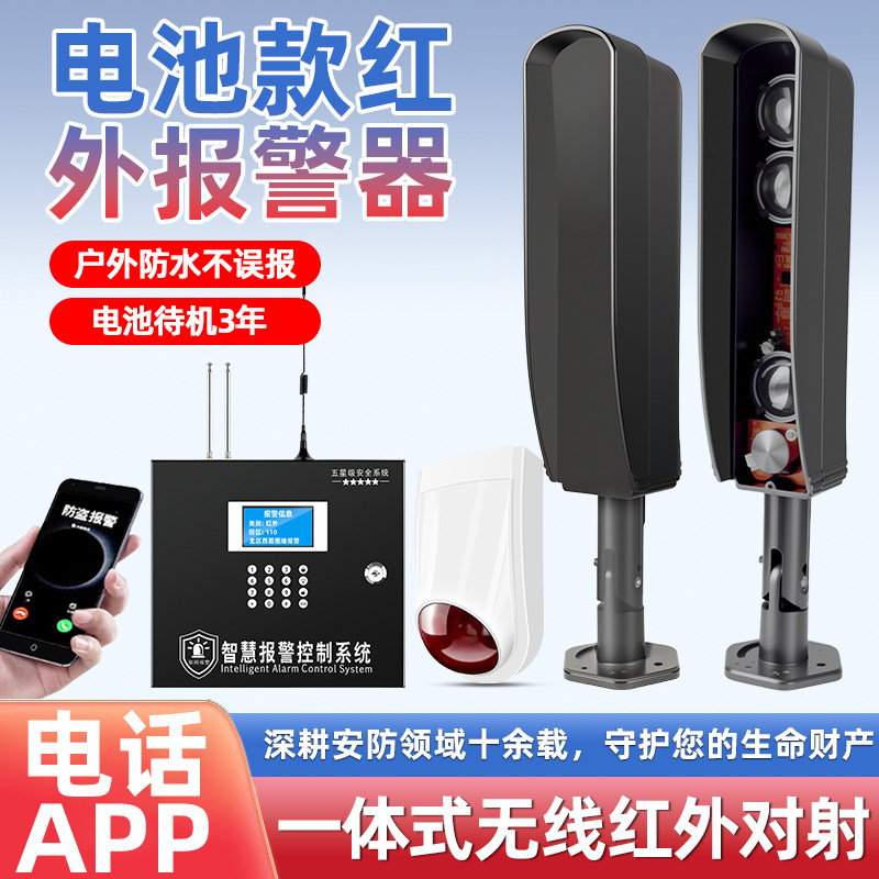 黑铁砖红外线防盗报警器无线远程警报器户外果园人体感应安防系统