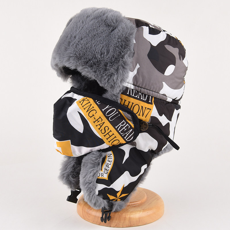 雷锋帽男冬季迷彩棉帽子女加厚保暖口罩帽护耳东北户外骑车防寒帽