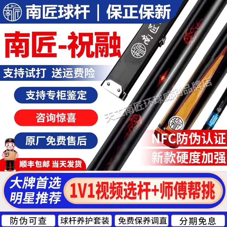 南匠桌球杆杆中式南匠祝融小头杆一体台八台球杆实木台球球杆通黑