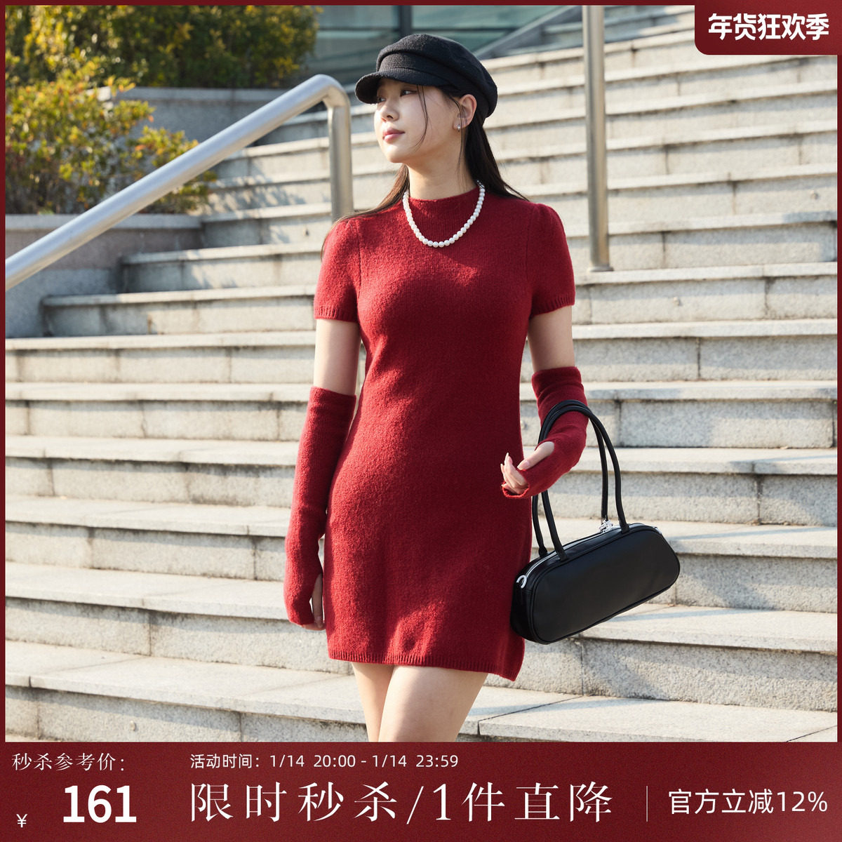 西町村屋复古风连衣裙女装秋冬新款氛围感袖套针织长裙AD8502026