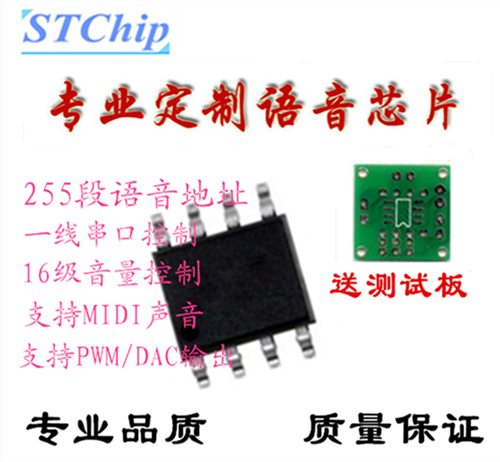 语音芯片 语音IC 3-5V一线串口控制225段语音地址16级音量控制。