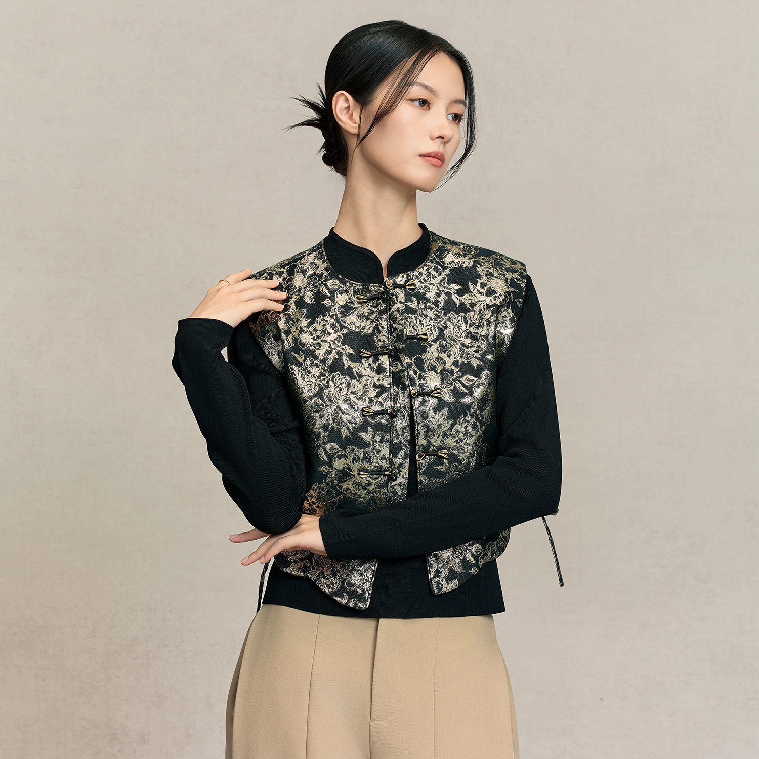 星河汉歌山间觅新中式套装垂感宋裤套装2025冬新款黑色日常阔腿裤