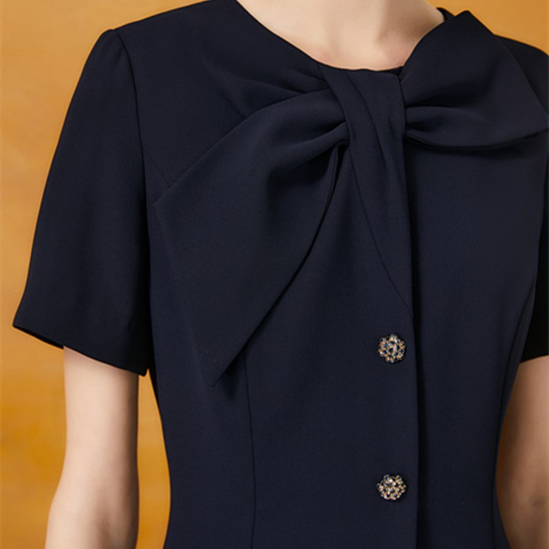 歌中歌2024夏季新款立体蝴蝶领结藏蓝色优雅气质连衣裙5C64205250