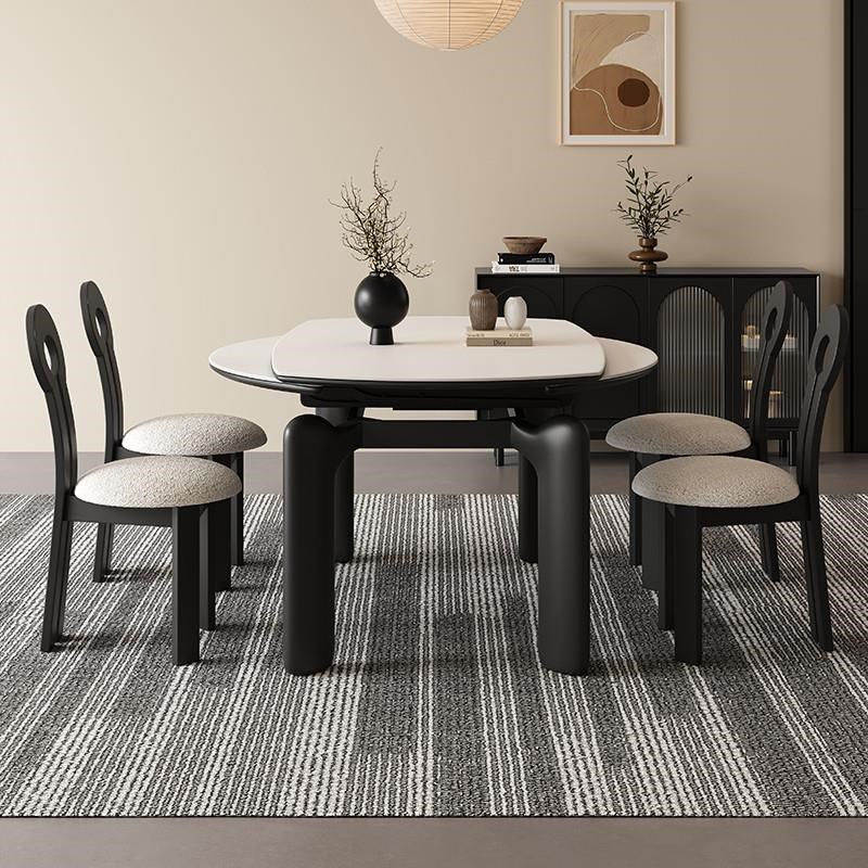 侘寂原木岩板餐桌伸缩折叠可变圆桌家用小户型现代简约饭桌椅组合