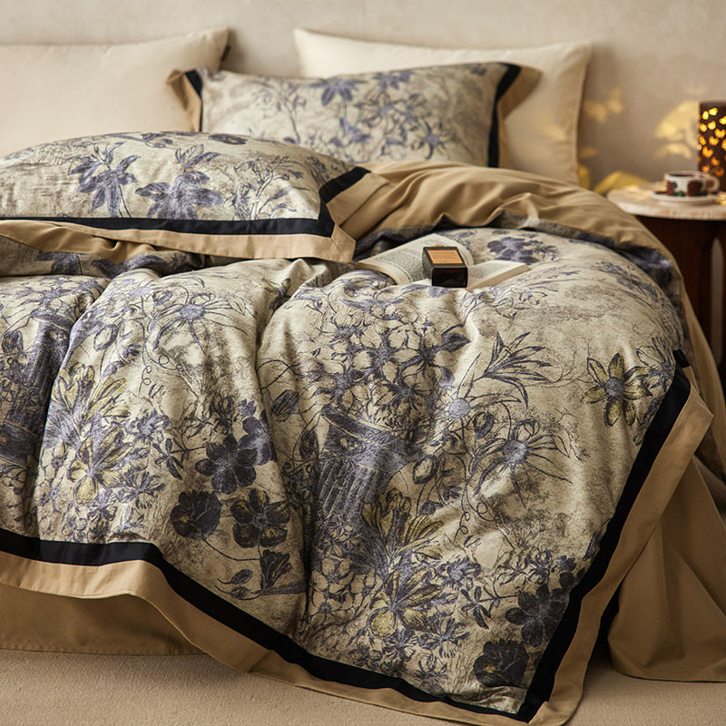 美式轻奢60支长绒棉四件套全棉纯棉床笠床单印花贡缎被套床上用品