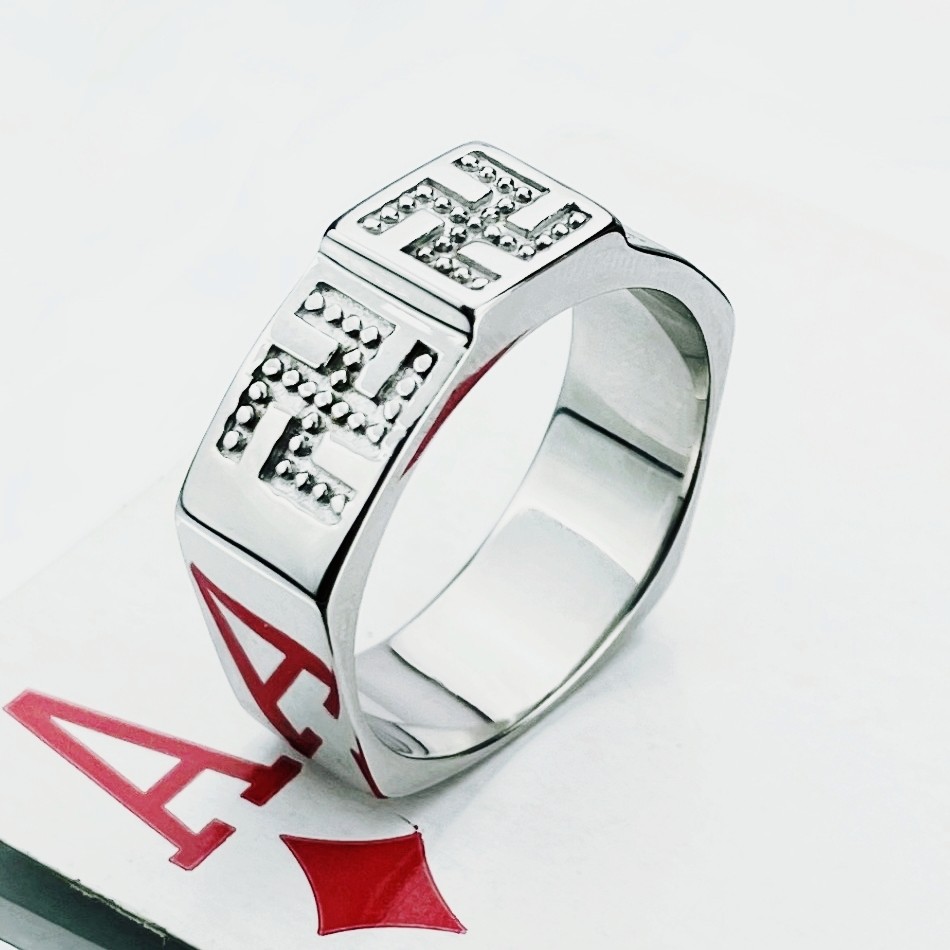 国潮高镜面抛光认牌扑克魔术道具底照六边形潮男戒指环钛钢不掉色
