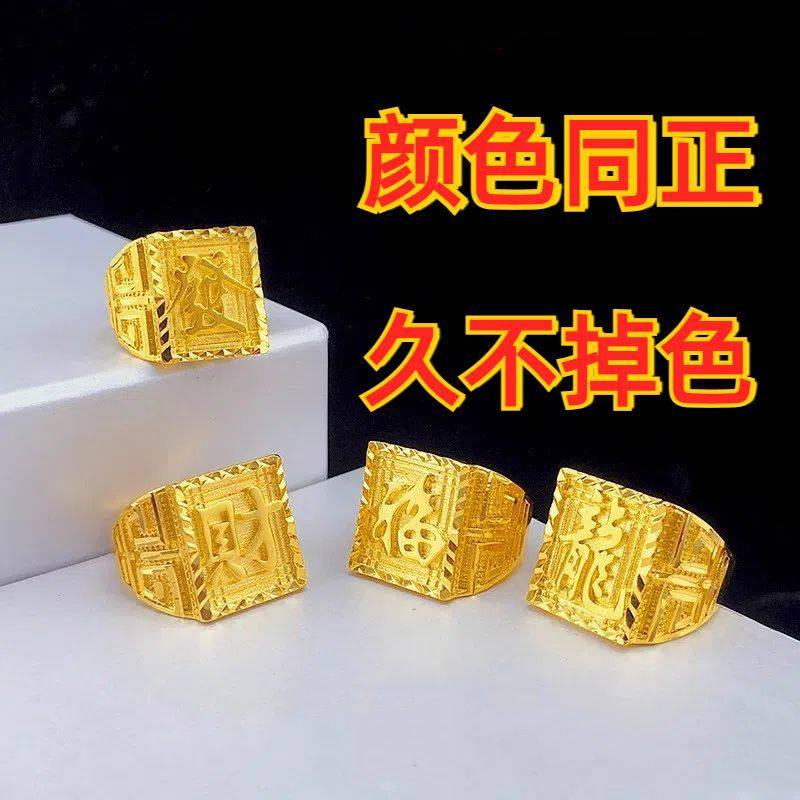 正品足金999黄金24k戒指男款霸气霸气男戒指开口金包银发财字指环