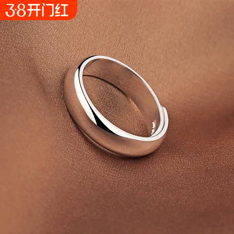 光面戒指女足银男生开口尾戒男戒指食指素圈男女潮情侣对戒可调节