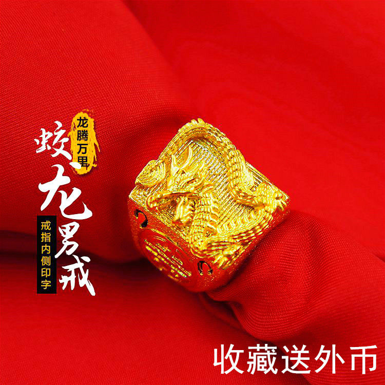 新款越南沙金仿真黄金色男戒指霸气大号龙戒不掉色男士首饰品戒指