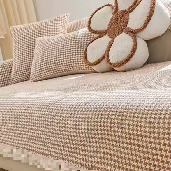 现代简约沙发垫四季通用布艺千鸟格老粗布防滑盖布客厅靠背扶手巾