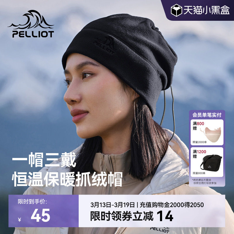 伯希和户外抓绒帽女士春登山保暖徒步防风骑车防寒帽子围脖一体男