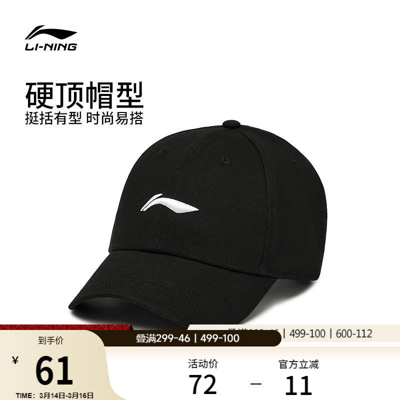李宁帽子男女官方正品棒球帽黑色经典LOGO运动大头帽檐加深鸭舌帽