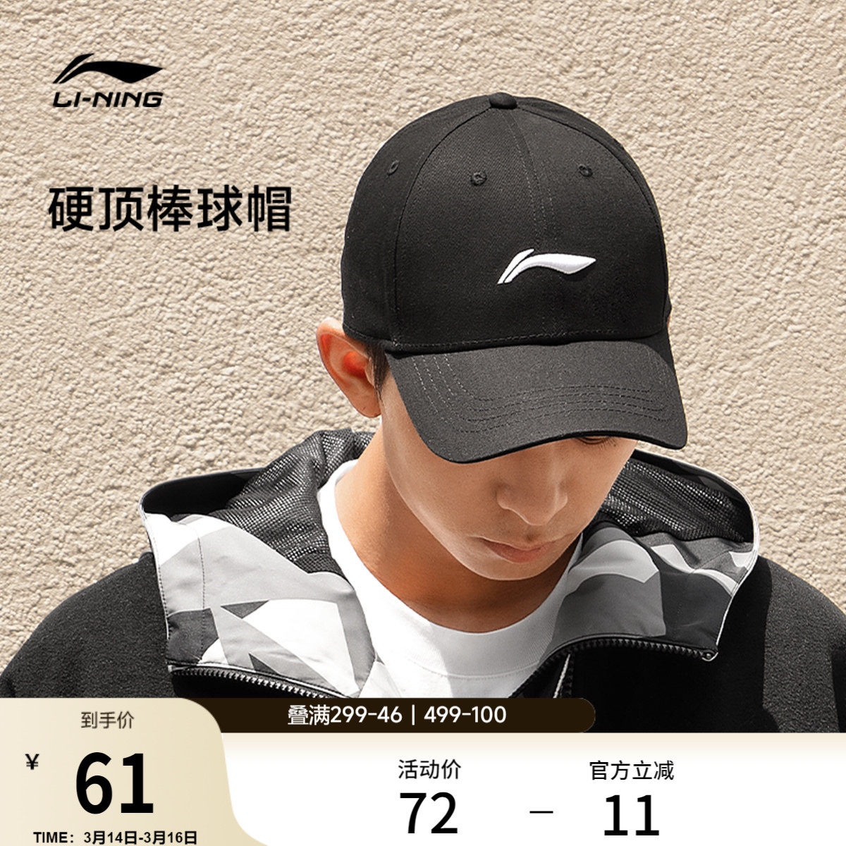 李宁帽子男女官方正品棒球帽黑色帽檐LOGO运动大头加深百搭鸭舌帽