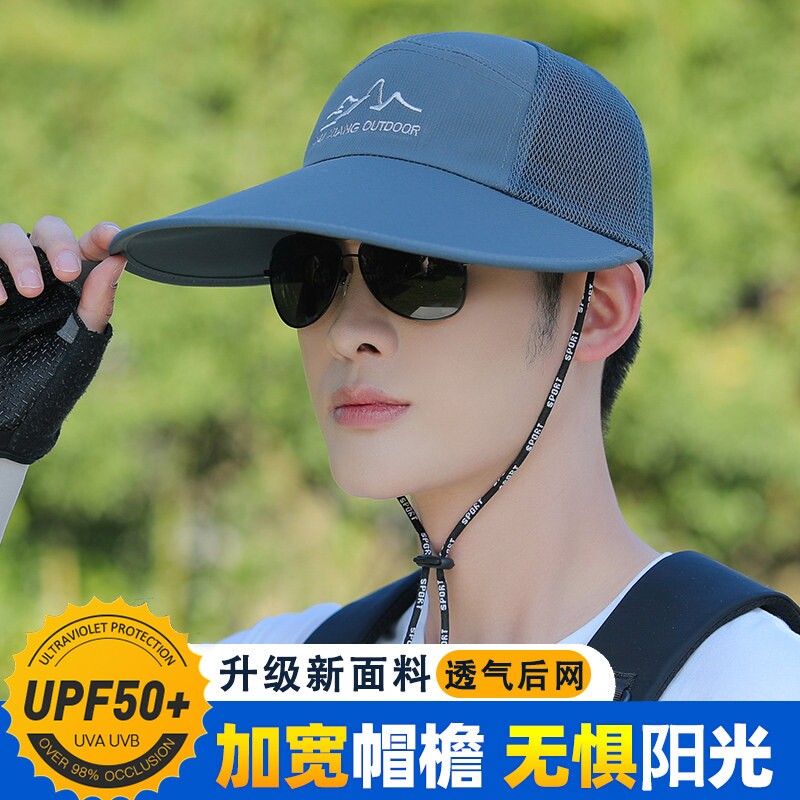 帽子男士夏季户外鸭舌帽大檐防紫外线太阳帽防晒棒球帽遮阳钓鱼帽