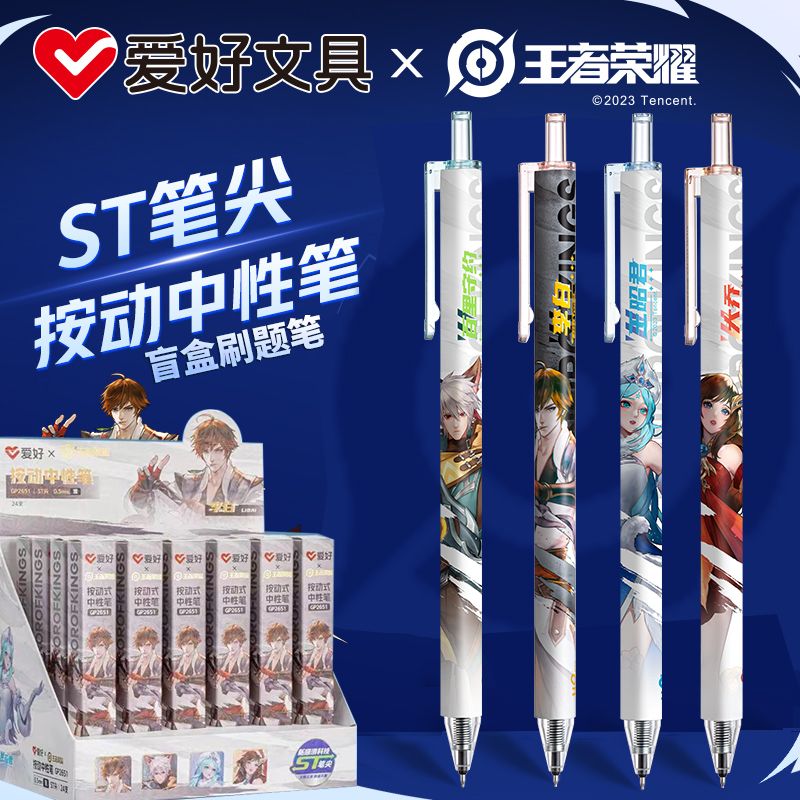 王者荣耀联名盲盒笔按动式中性笔st头学生用动漫笔高颜值文具奖品