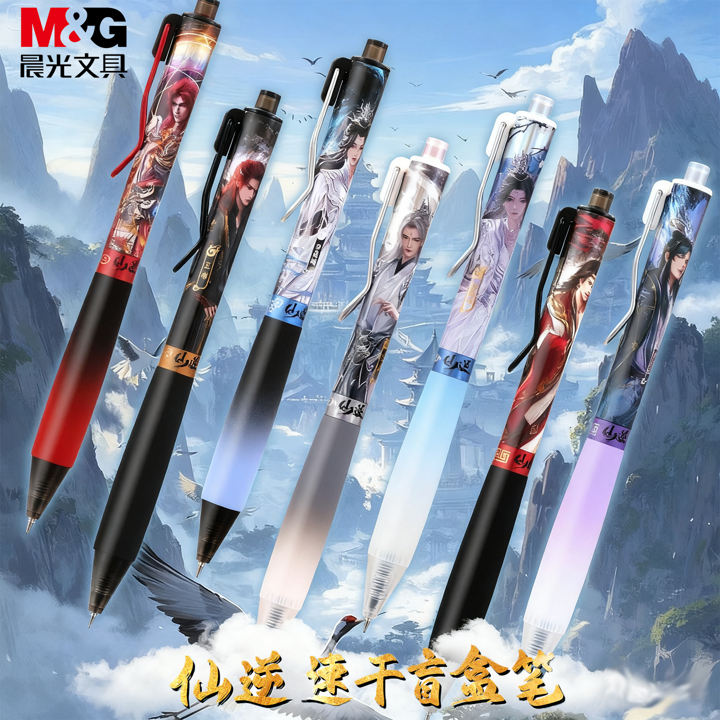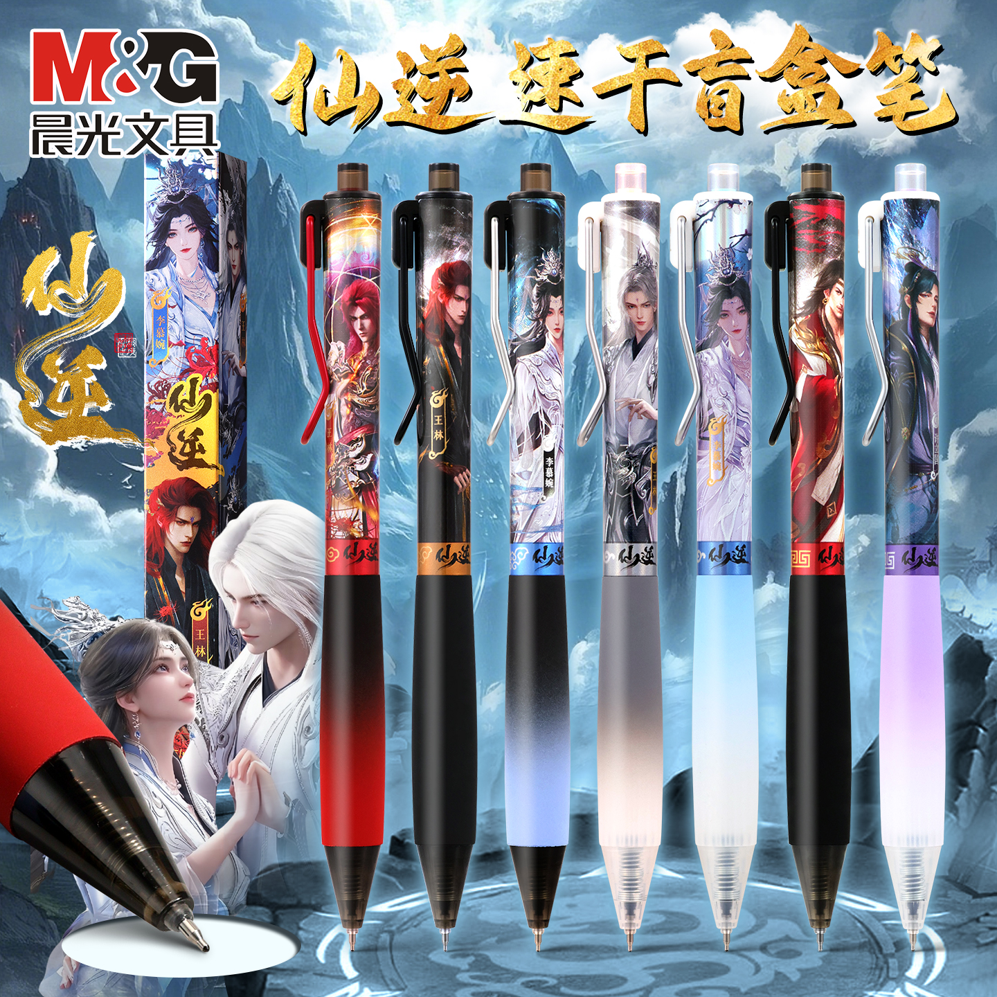 晨光盲盒笔仙逆按动中性笔高颜值学生用笔速干顺滑0.5mm黑色水笔动漫正品联名ST头黑笔仙逆动漫笔王林&李慕婉