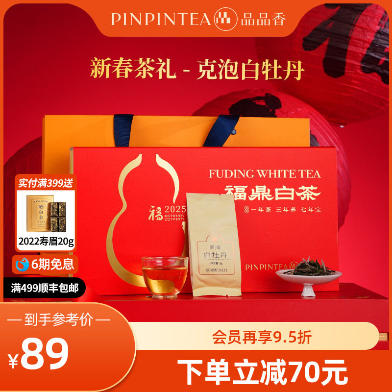 品品香福鼎白茶2025白牡丹茶叶100g礼盒装送长辈正品官方旗舰店