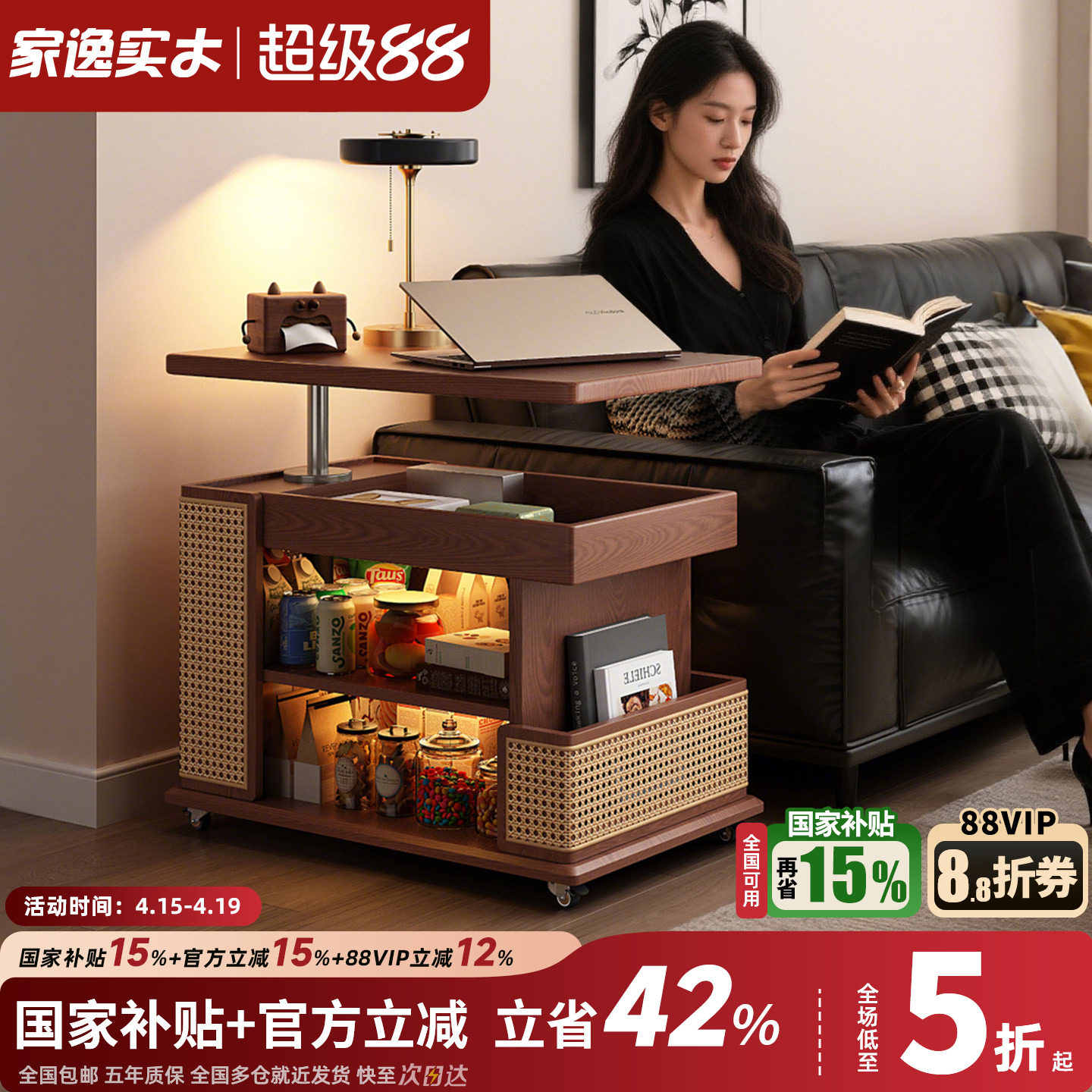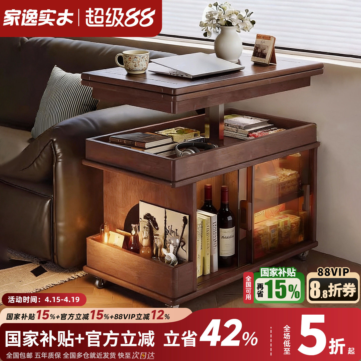 家逸实木可移动边几升降茶几国家补贴客厅家用沙发边柜轻奢高级感