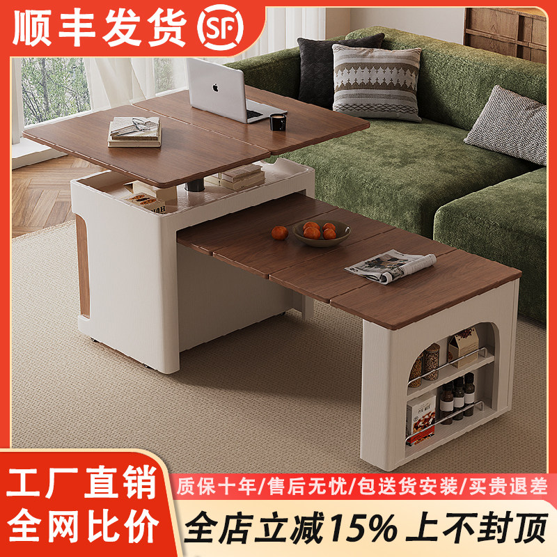 升降茶几餐桌两用多功能饭桌简约小户型家用创意可伸缩折叠茶几桌