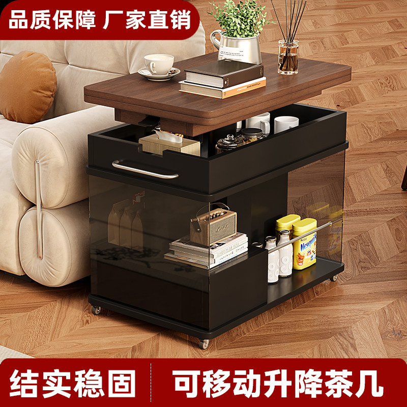 可移动茶几小推车客厅家用小户型2025新款多功能储物升降岩板茶几