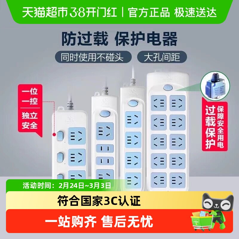 公牛插座插排插线板拖线板插板带线家用多功能正品转换器多用分控