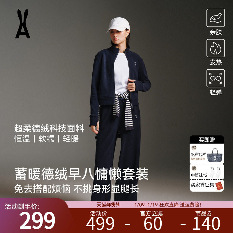 【德绒套装】安欧兔休闲运动套装女立领上衣阔腿裤跑步健身服外套