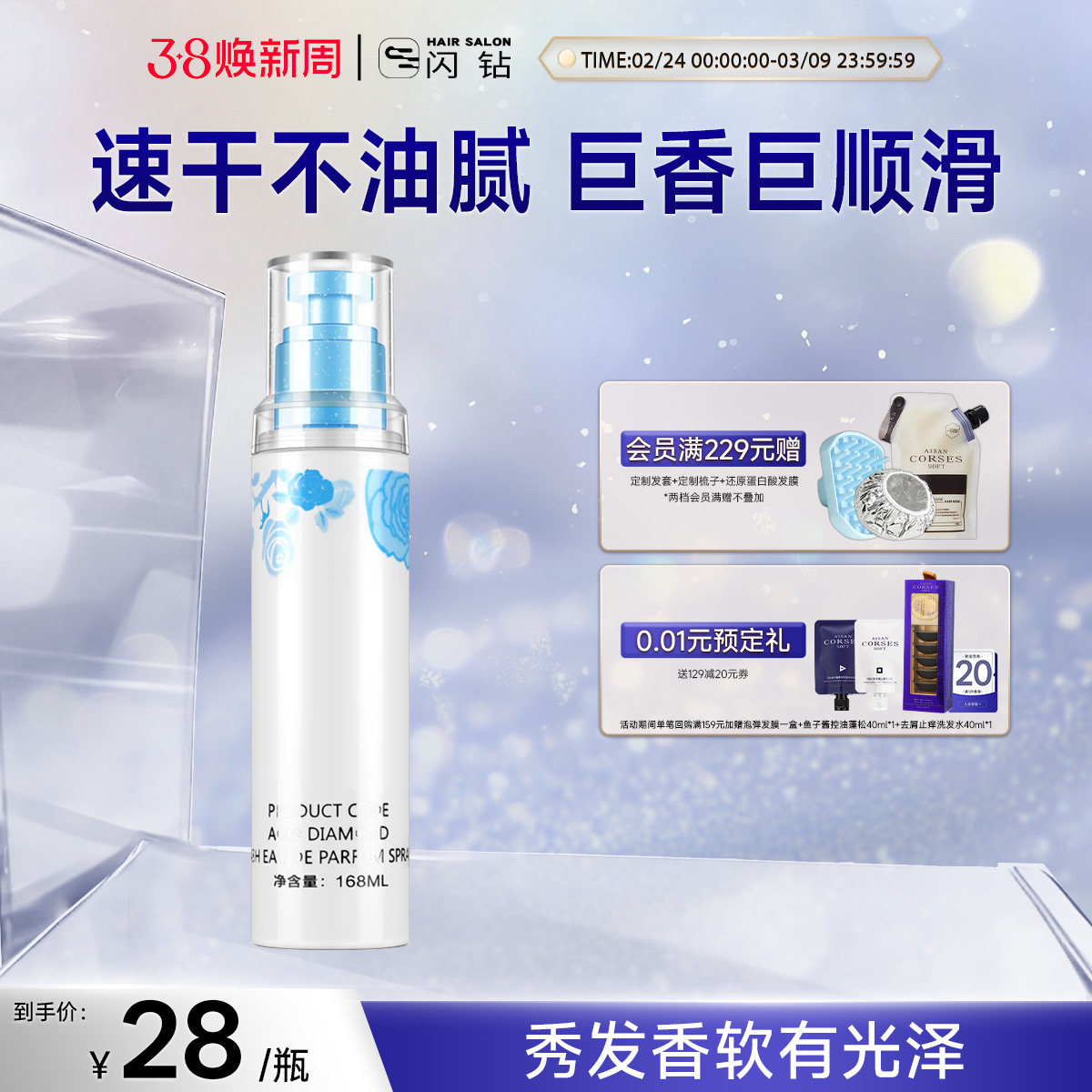 闪钻香水调香免冲洗补水柔顺喷雾烟酰胺喷雾头发营养护发喷雾保湿