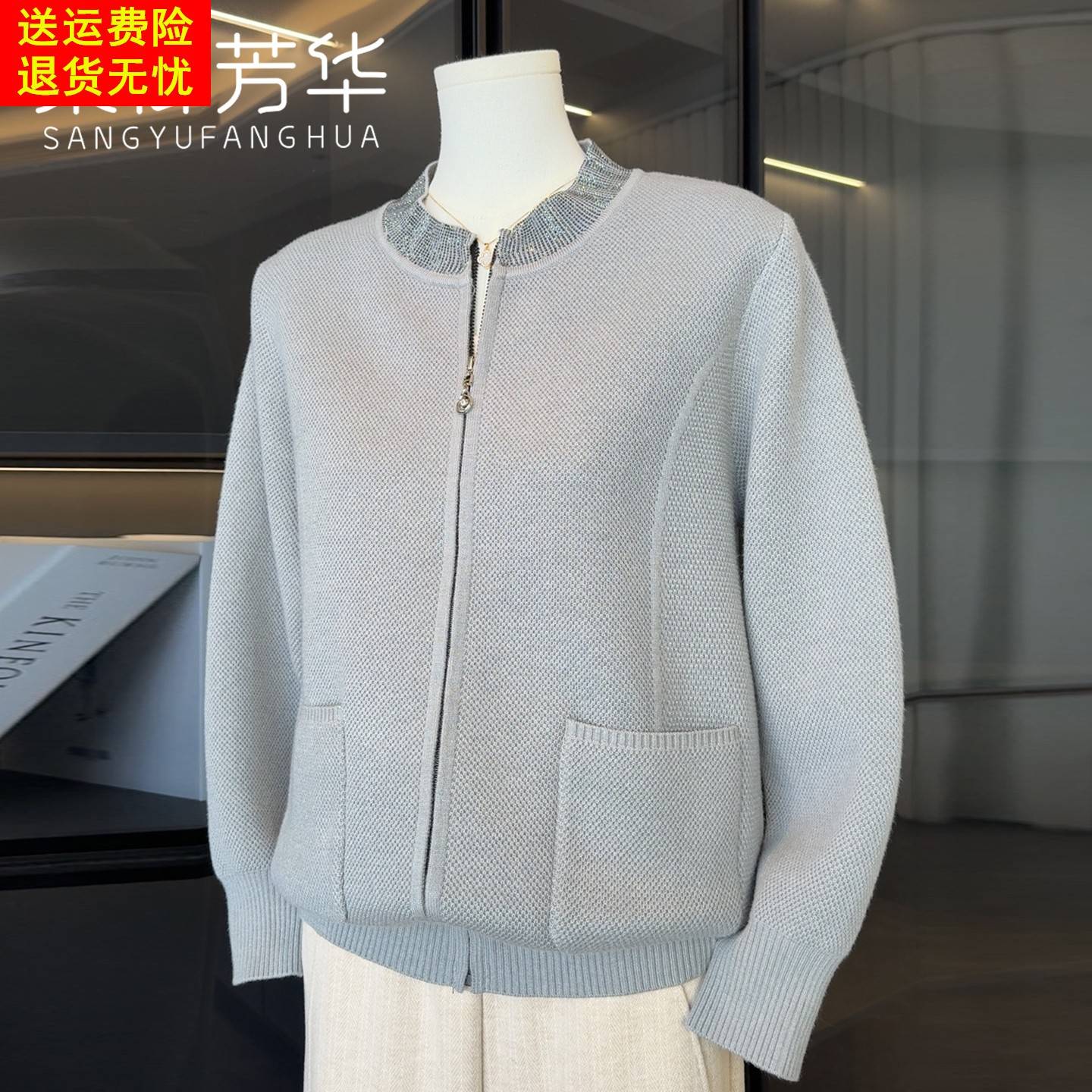 洋气妈妈秋装针织开衫中年女装2025新款中老年人春秋翻领长袖外套