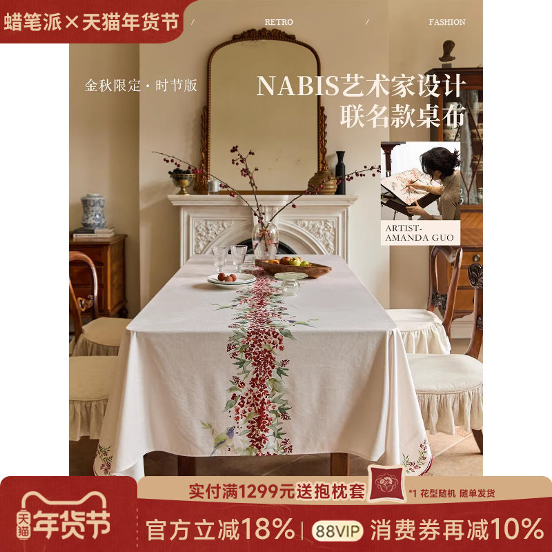 蜡笔派郭俊池联名|红果果系列|丹桂桌布红色轻奢氛围感防水桌布P