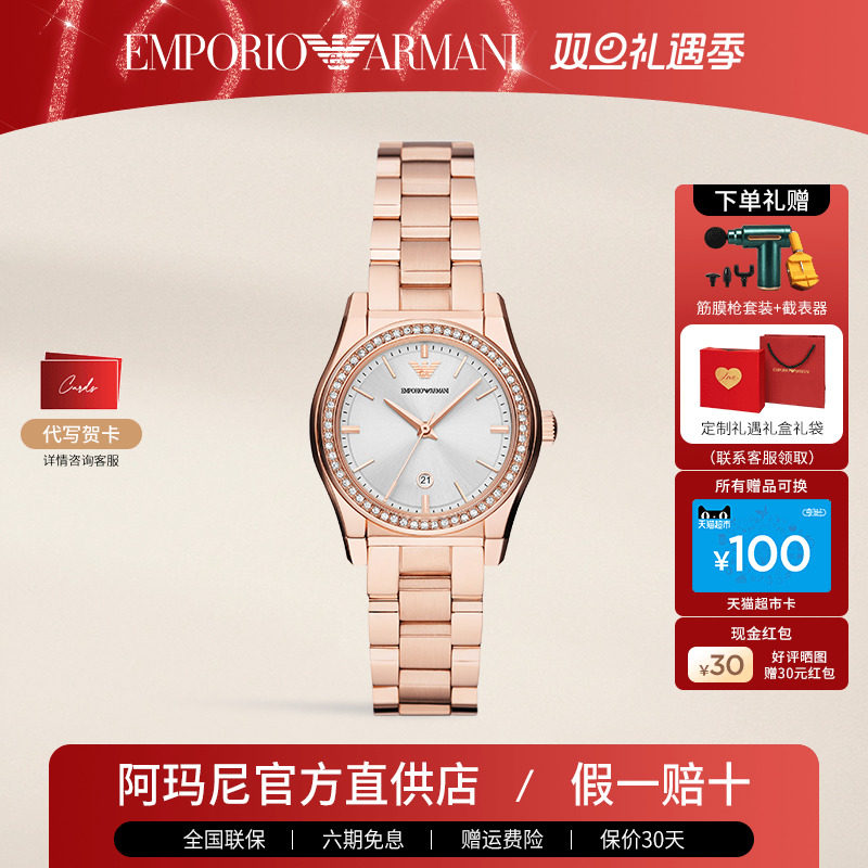 阿玛尼手表女 白月光太阳纹气质玫瑰金生日礼物送女友AR11558