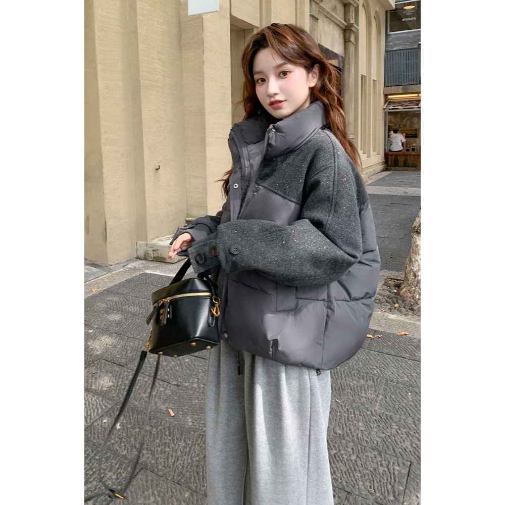 2025新款亮片拼接棉衣女韩版时尚洋气棉服冬季小个子立领棉袄外套