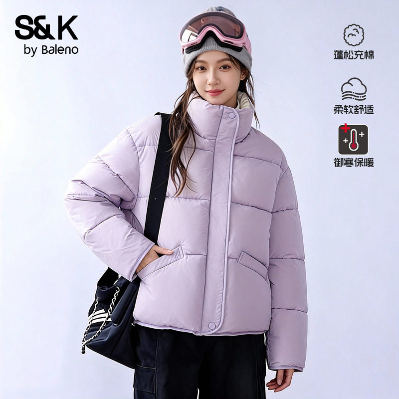 班尼路S&K系列立领棉服女2025冬季新款韩版时尚短款加厚保暖棉袄N